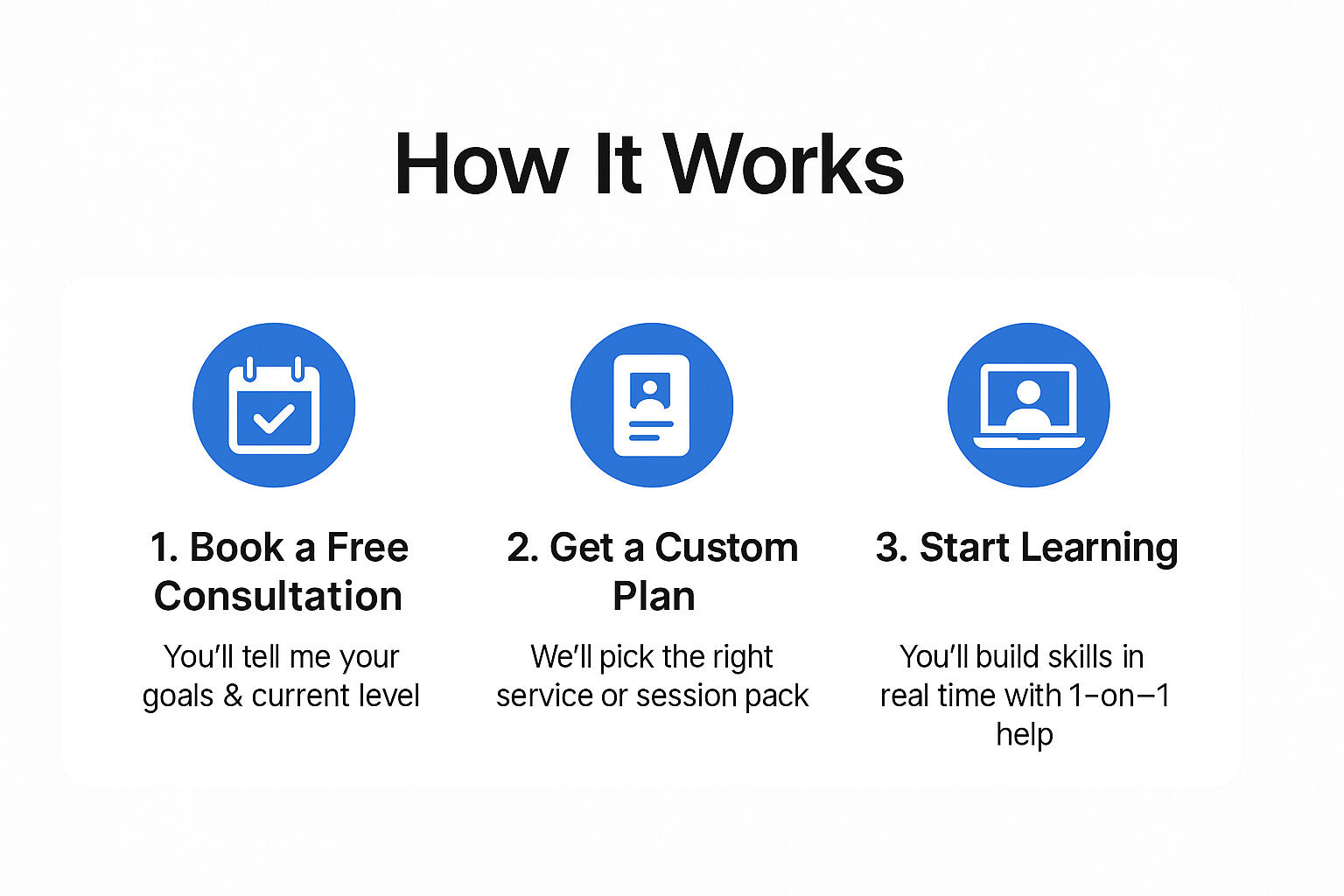 Whether you’re a complete beginner or aiming for certification, we’ll build a plan that fits you.